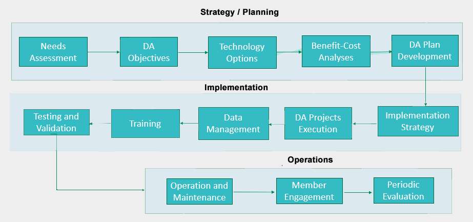 The following roadmap details the process for co-ops in developing DA capabilities and the scope of NRECA's DA Initiative: