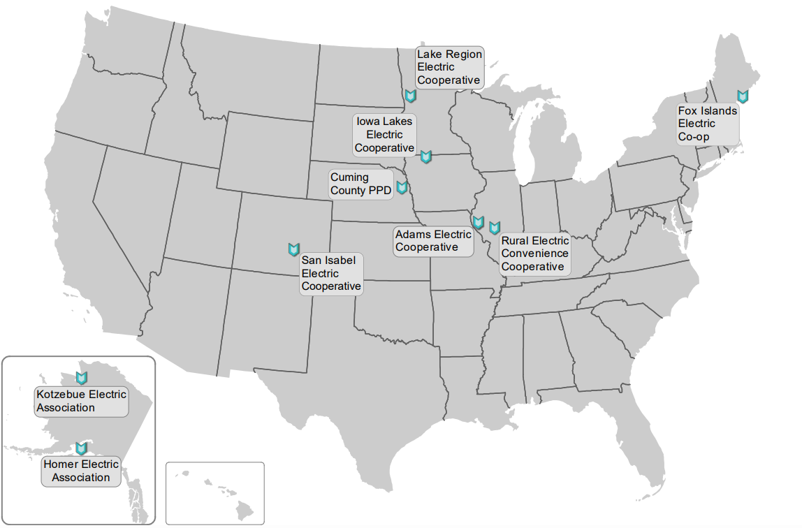 Locations of the Cooperatives Featured in RADWIND Case Studies